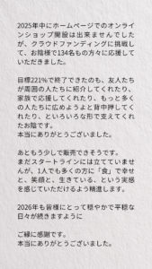 お陰様でクラウドファンディング目標221%で終了しました